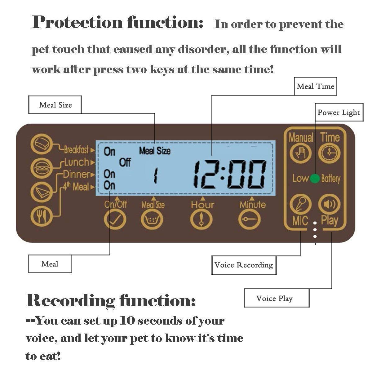 Programmable: 1-39 portions (5g-390g) per meal, 4 meals per day