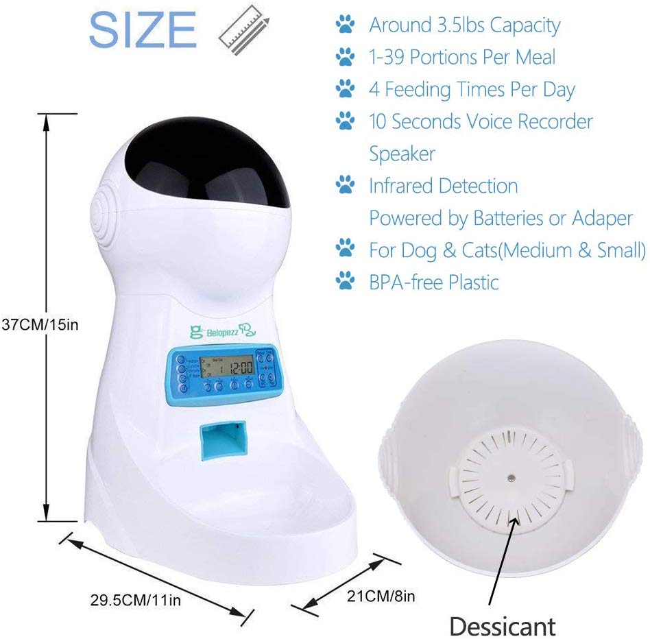 Package Content: 1 x Automatic Pet Feeder, 1 x Power Adapter, 1 x User Manual, 2 x Meal size,1x Shaking Q pet(Gift)